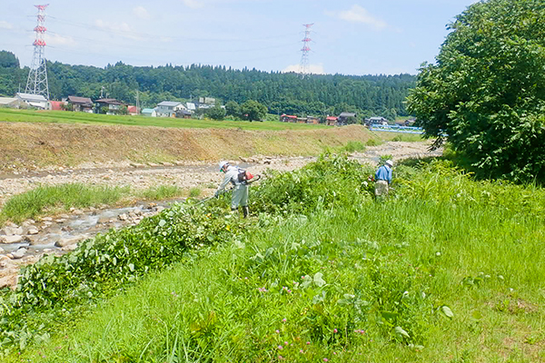 ・当間川や信濃川の堤防除草、県道の道路除草
